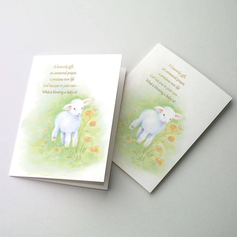 Front Text: A heavenly gift, an answered prayer, a precious new life God has put in your care – What a blessing a baby is!